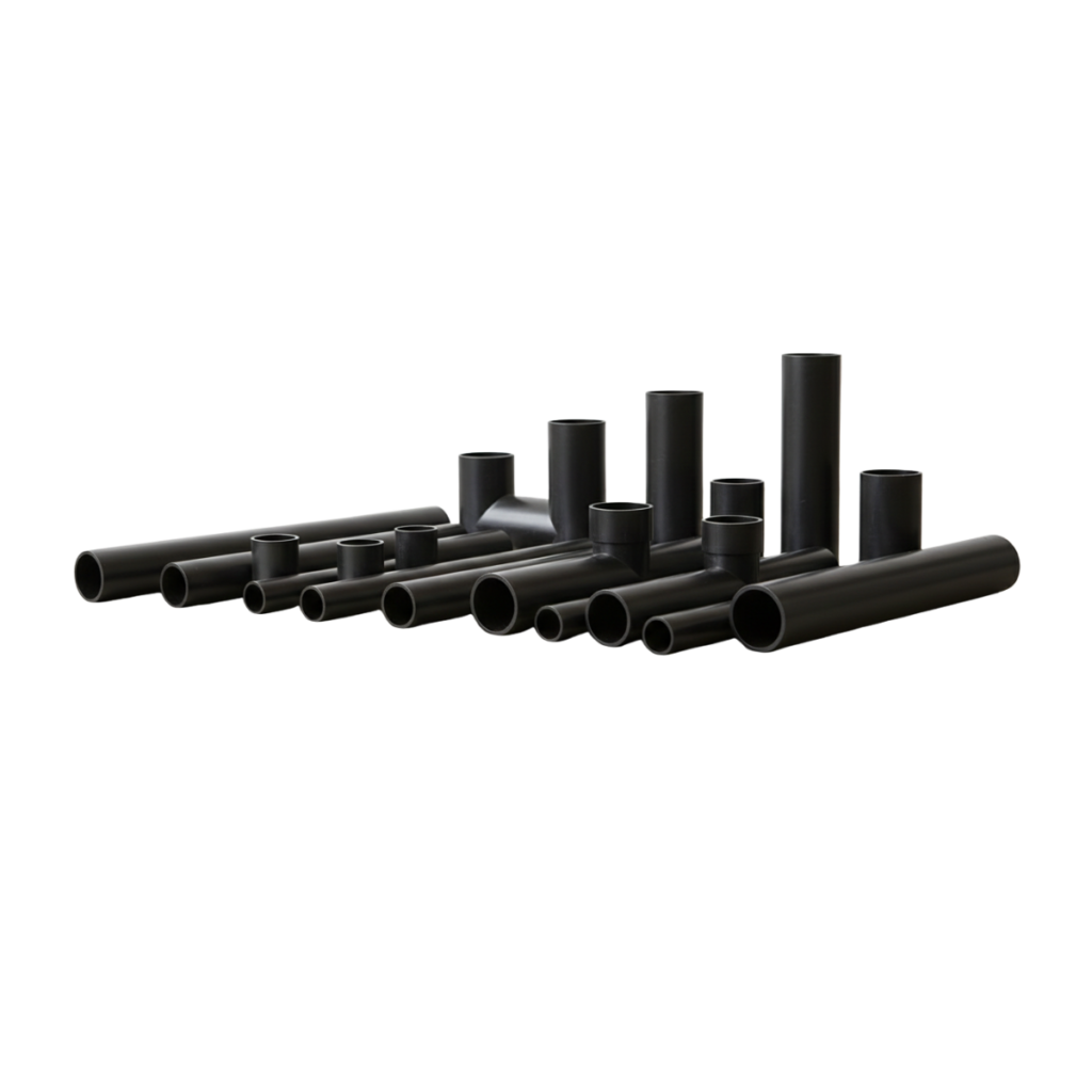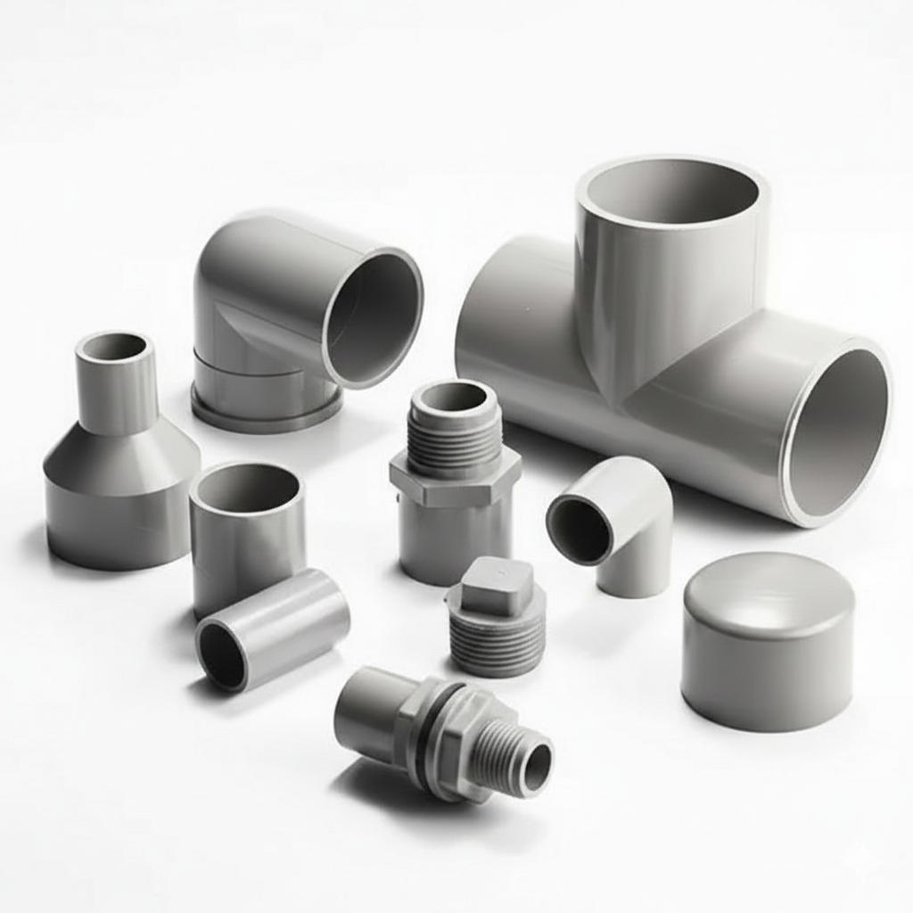 Rigid white PVC for pipe fittings. Features exceptional tensile strength (≥55 MPa) for high-pressure systems.